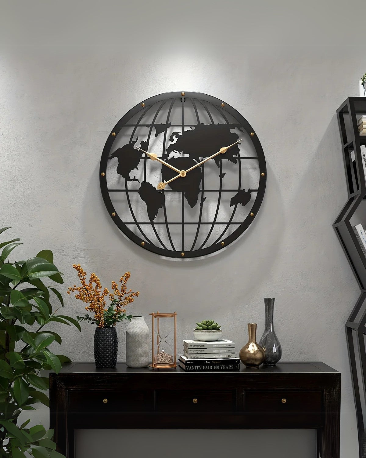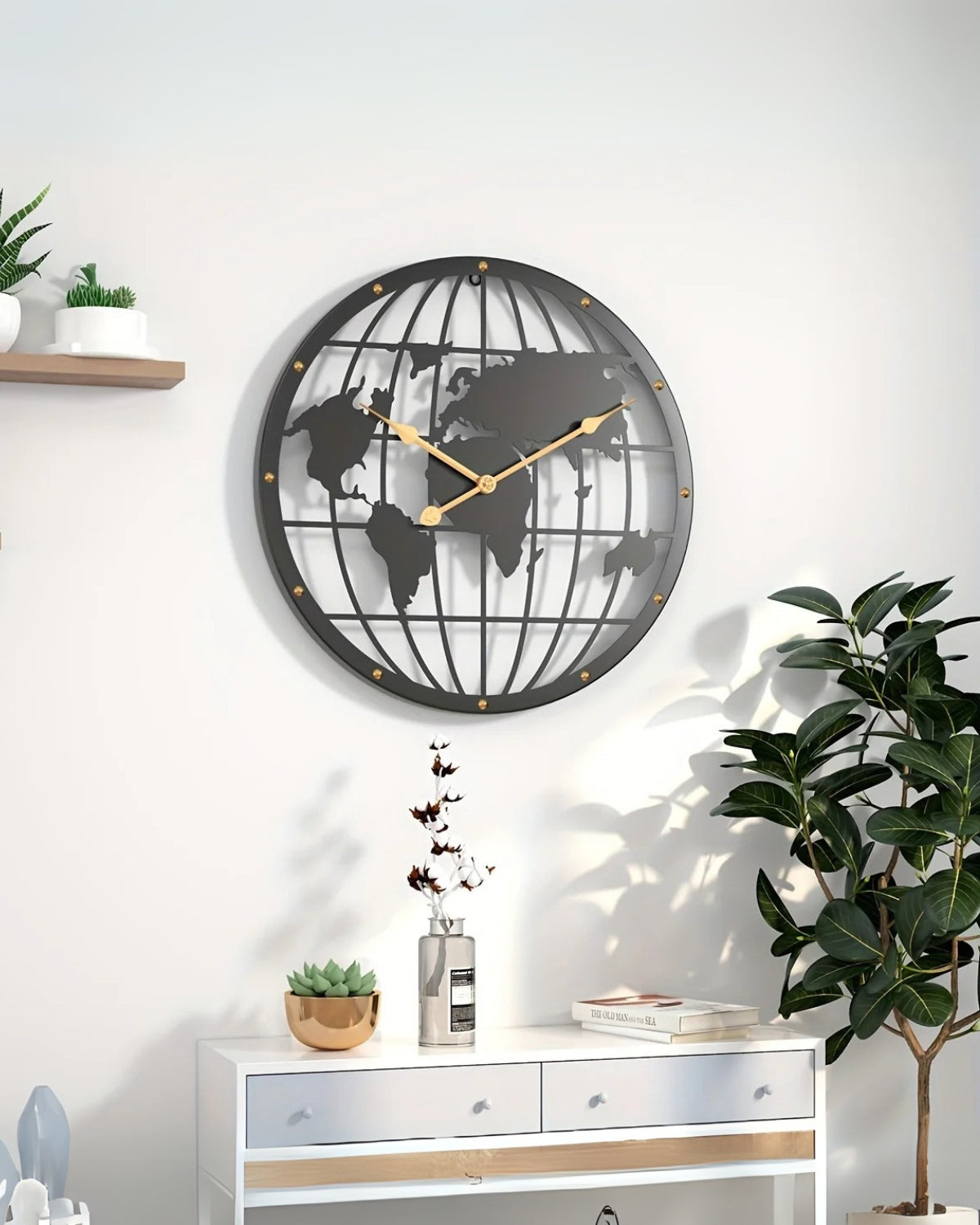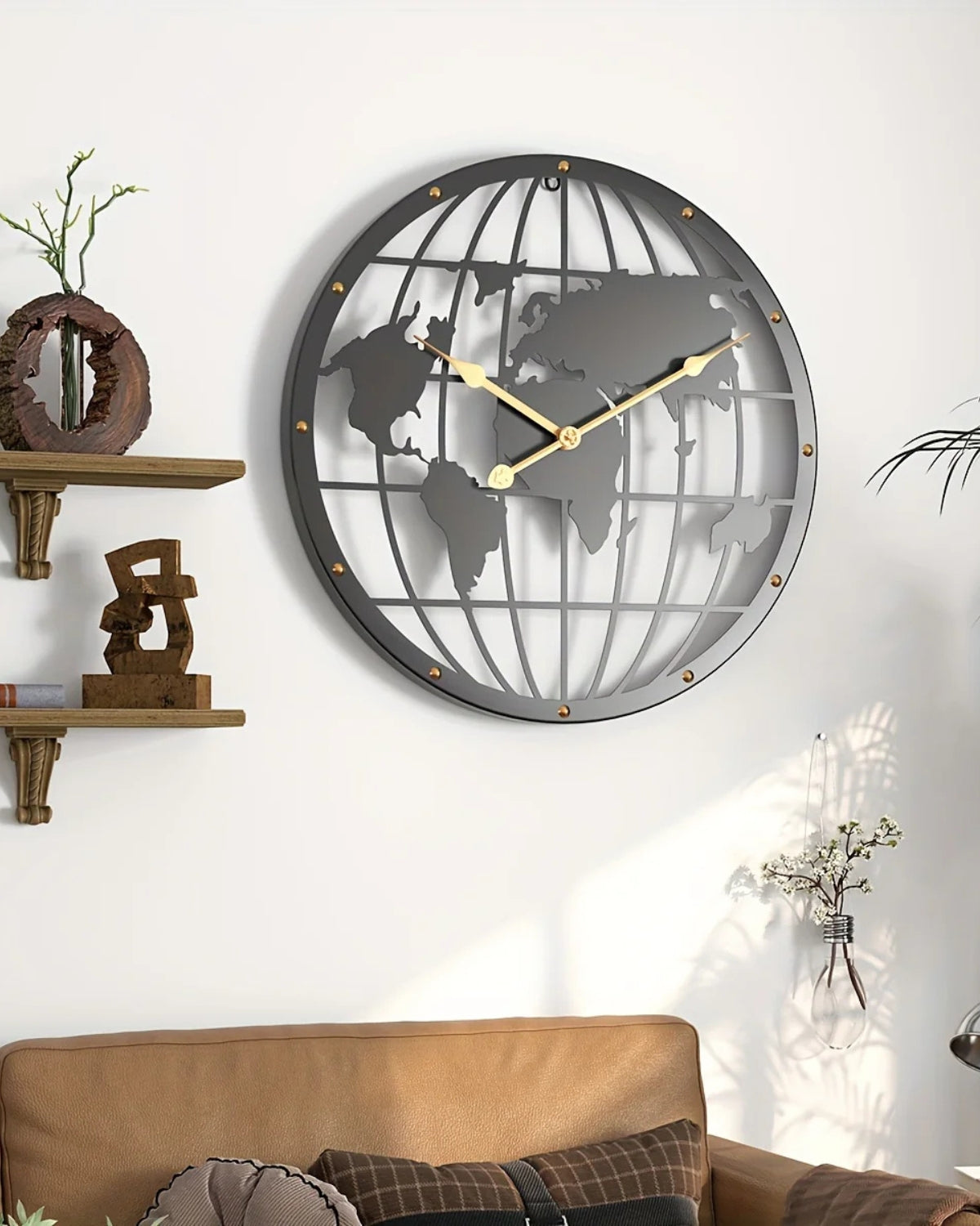 GlobaTime - Stilfuldt åbent vægur med verdenskort og fede tal til ethvert interiør