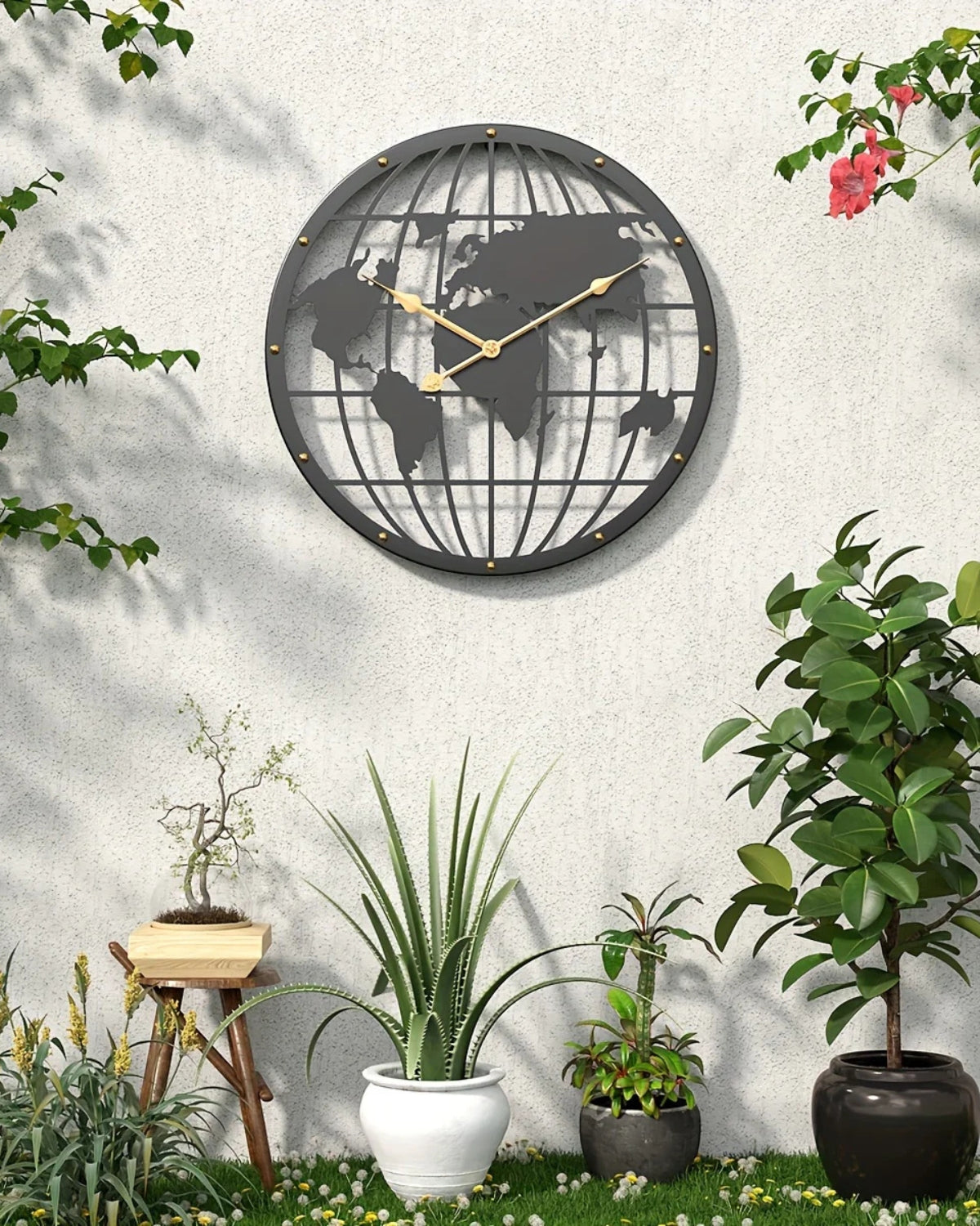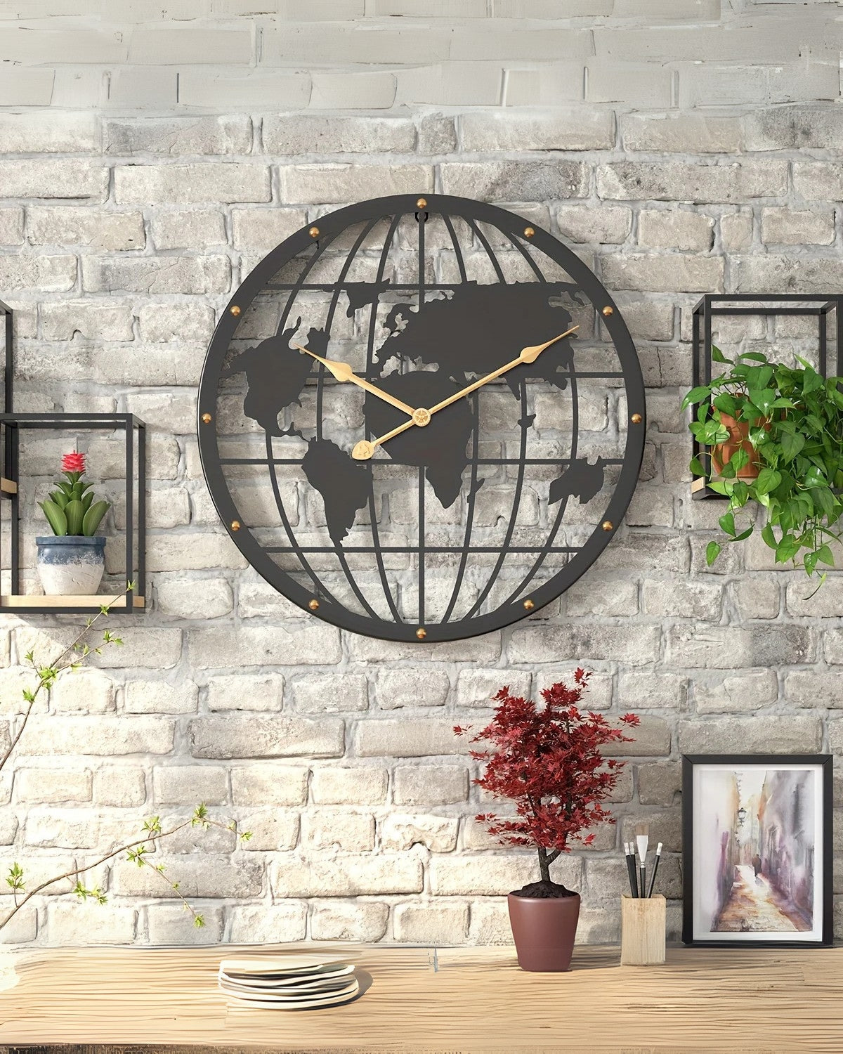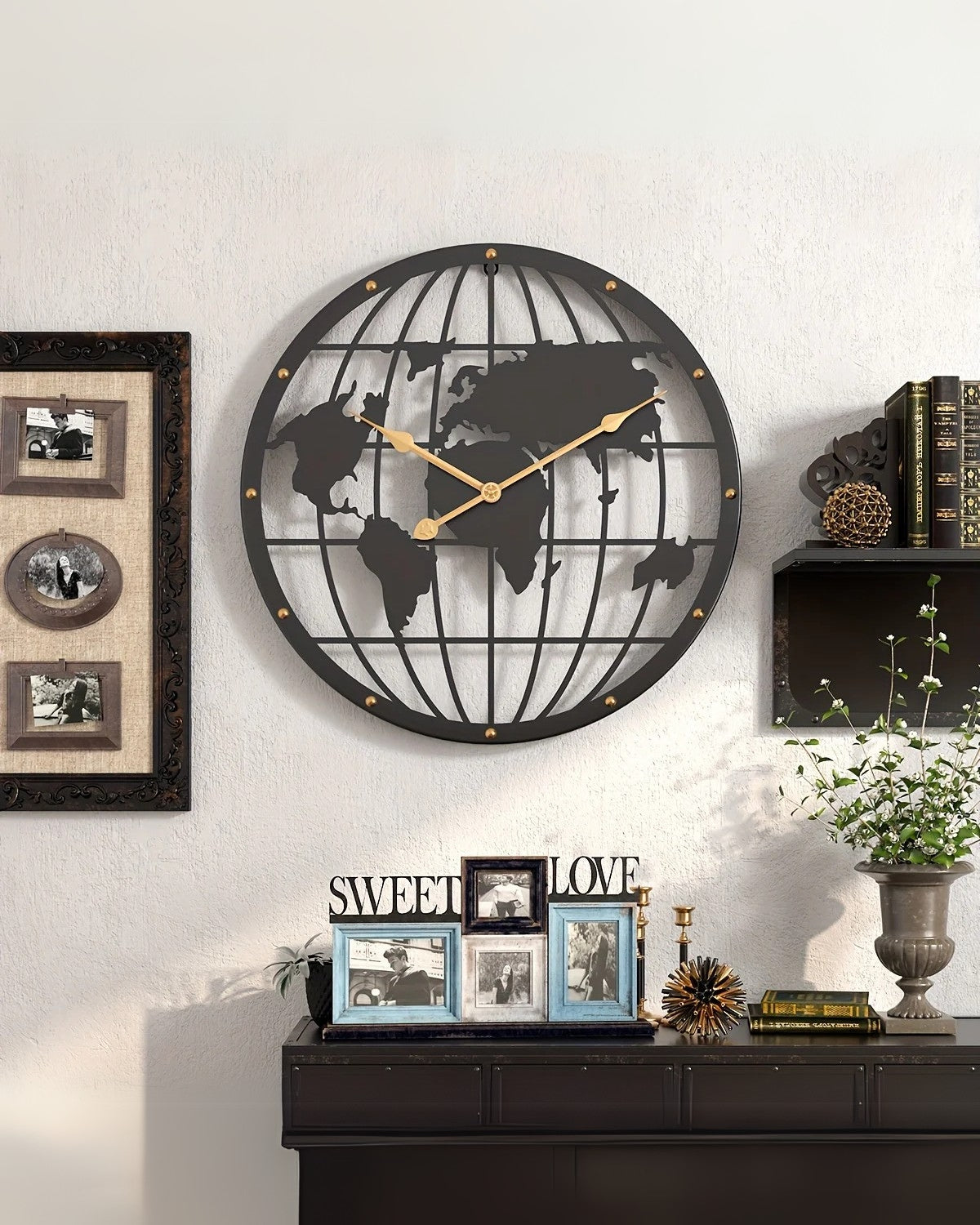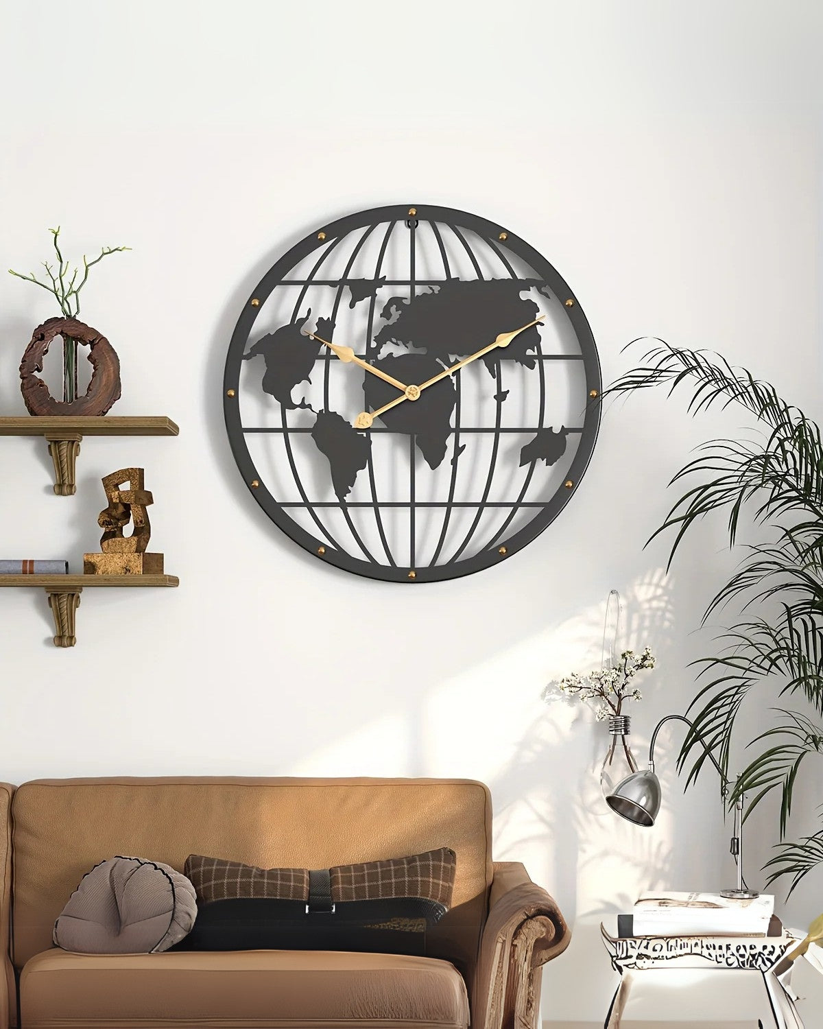 GlobaTime - Stilfuldt åbent vægur med verdenskort og fede tal til ethvert interiør