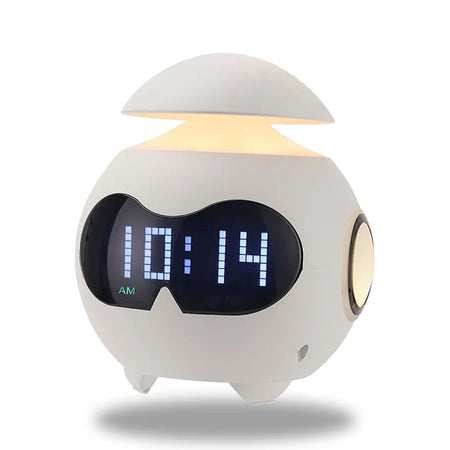 GlobeGlow kombinerer innovation og elegance med sit slanke sfæriske design og digitale LED-display. Det klare blå tidsdisplay er let at læse, mens yderligere alarm- og temperaturfunktioner øger bekvemmeligheden. En cirkulær lysåbning i toppen spreder blidt belysningen og skaber en beroligende atmosfære. Det sorte og hvide farveskema tilføjer et futuristisk præg, hvilket gør det til en stilfuld tilføjelse til ethvert moderne rum.