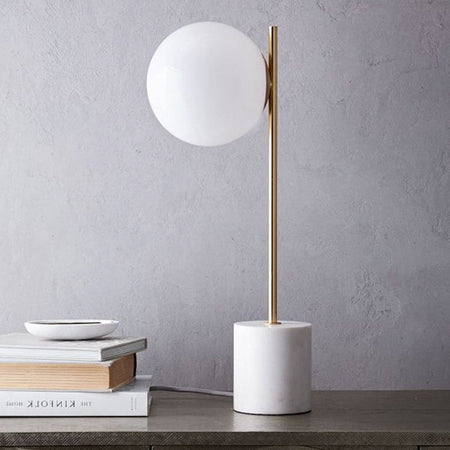 GlobeMist - Hvid Globe Bordlampe med Elegant Steninspireret Fod
