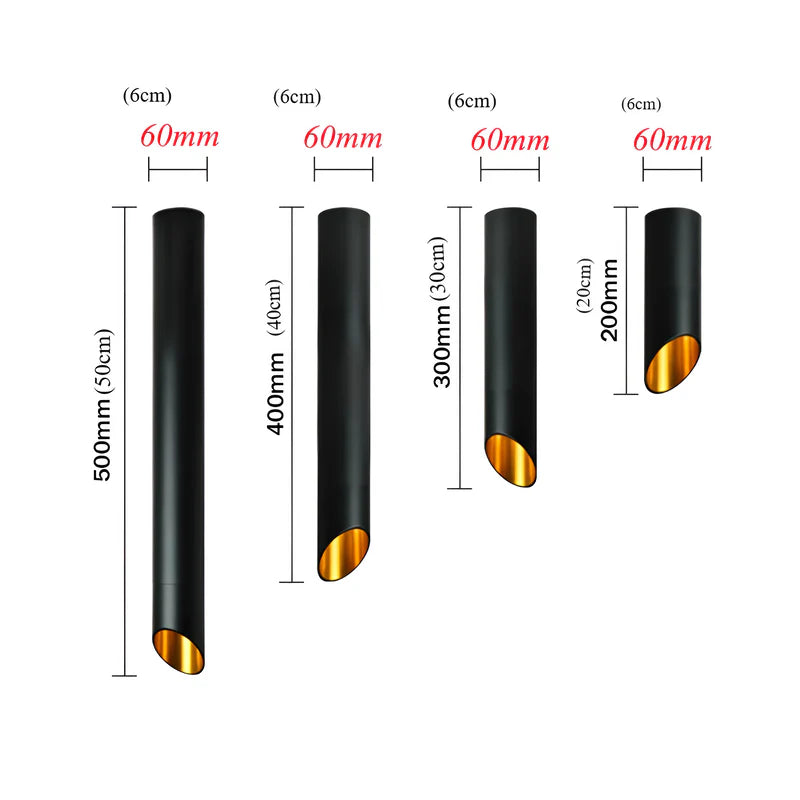 - Slank rørformet form passer til enhver indretning