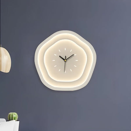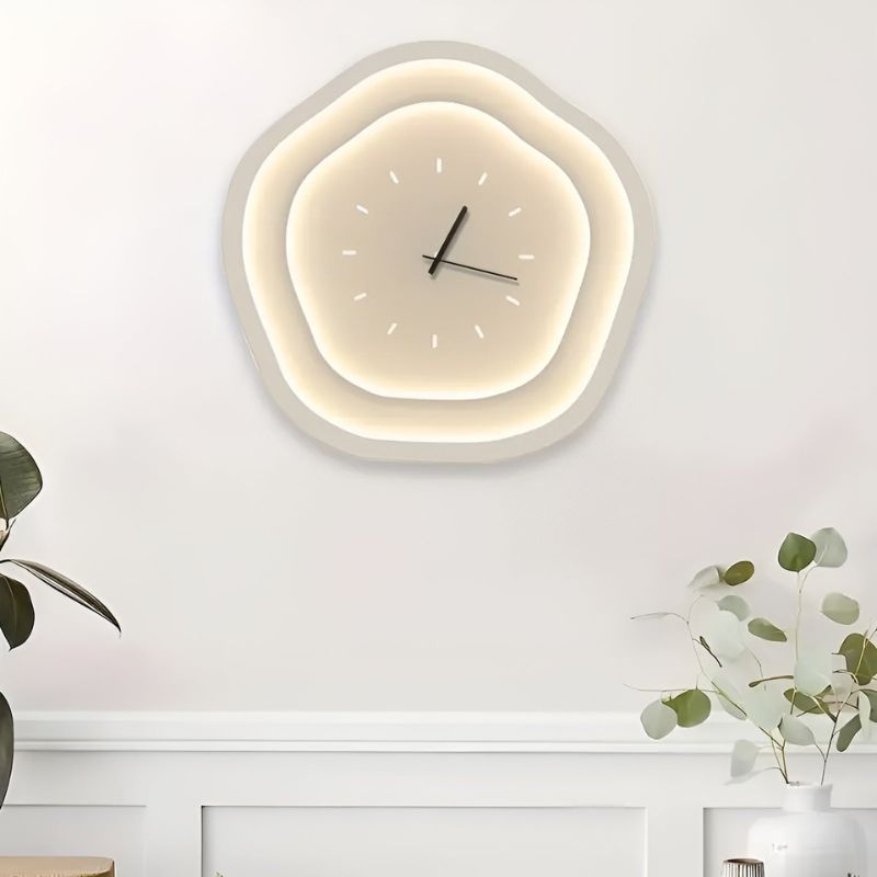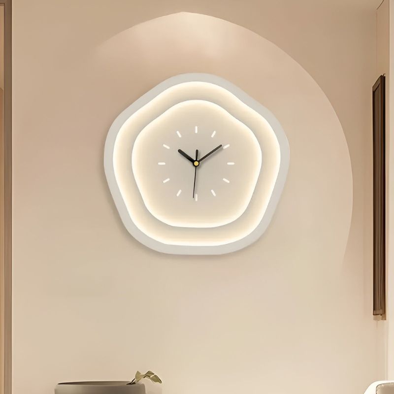 Denne væglampe kombinerer LED belysning med et urdisplay. Den kan monteres i stuer, soveværelser eller kontorer for at give belysning og en funktionel tidsvisning.