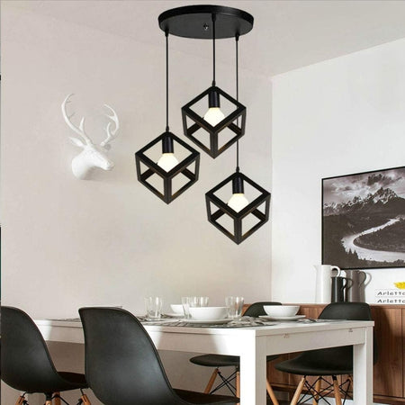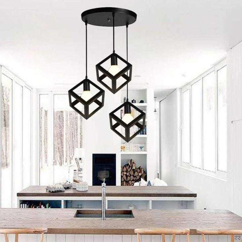 Kubeformet pendelloftlampe med tre integrerede lyskilder