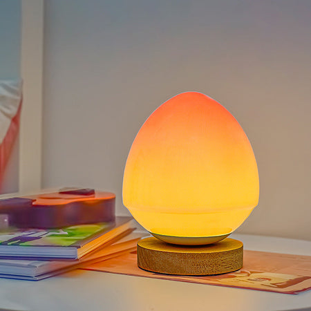 GlowHaven - Glasbordlampe med træfod og USB genopladelig LED