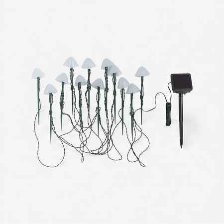 Denne LED solcelle landskabslygte har en svampeinspireret form, som er velegnet til udendørs placering. Den kan placeres langs stier, i haver eller nær andre udendørs opsætninger. Dens lette konstruktion og solcelledrevne funktion gør det muligt at placere og flytte lyset uden ledninger.