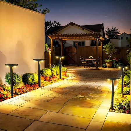 GlowPath solcellehavelamper har et elegant T-formet design, der tilføjer et moderne touch til dit landskab, samtidig med at de maksimerer belysningen. Disse lamper er perfekte til at forbedre gangstier, indkørsler og havekanter med en raffineret glød. Den smarte struktur sikrer afbalanceret belysning i alle retninger, hvilket gør dine udendørsområder mere indbydende. Uanset om du sætter dig ind til en stille aften eller underholder gæster, leverer disse lamper både elegance og funktion.