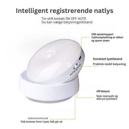 GlowSense - Trådløs Natlys Med Bevægelsesregistrering Og Justerbar Belysning