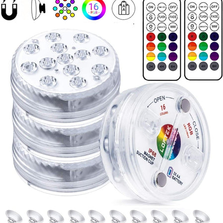 - Fjernbetjening med justerbar lysstyrke og lystilstande
