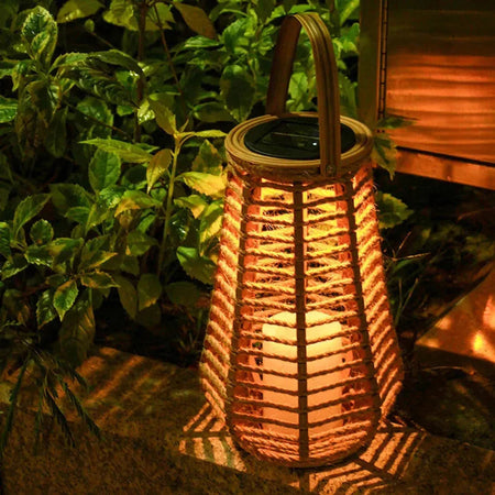 GlowWeave – Solcelledrevet lanterne i rattan til ophæng og haveliv