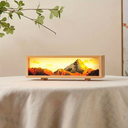 Dette LED-natlys skaber en beroligende og fredelig atmosfære med sit gyldne bjerglandskabsdesign. Den bløde, varme glød tilføjer et strejf af ro til ethvert rum, hvilket gør det perfekt til afslapning. Uanset om det er til soveværelse eller stue, bringer det en fredfyldt stemning, uanset hvor den er placeret.