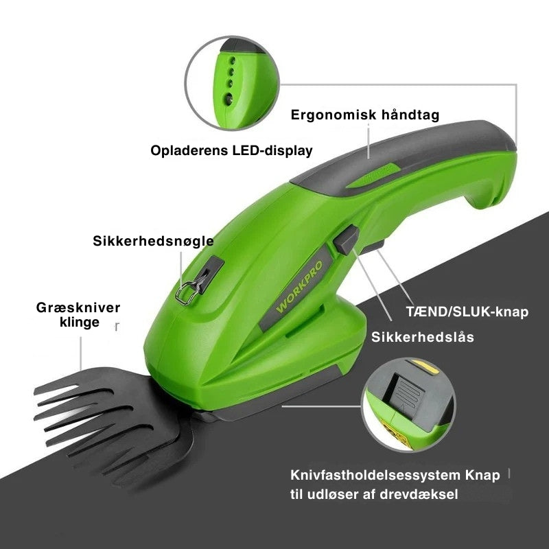 GrassPro – Batteridrevet ledningsfri trimmer med justerbart håndtag