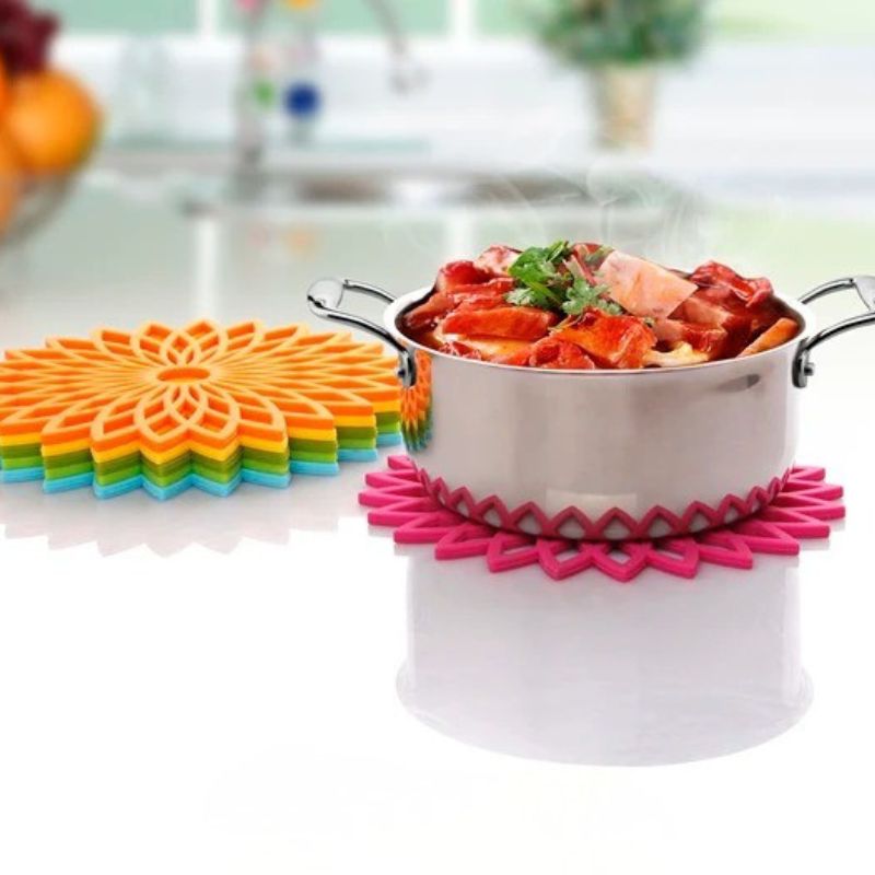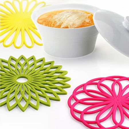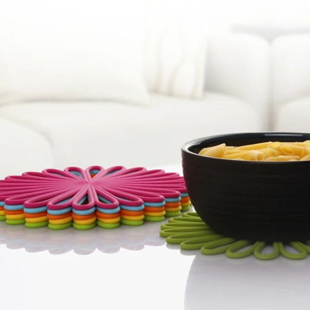 Disse måtter har et blomstermønster og en skridsikker overflade for stabil placering på borde eller bordplader. De hjælper med at beskytte køkken- og spisestueområder mod varme eller ridser. Hver måtte er nem at rengøre og egnet til daglig brug i hjemmet.