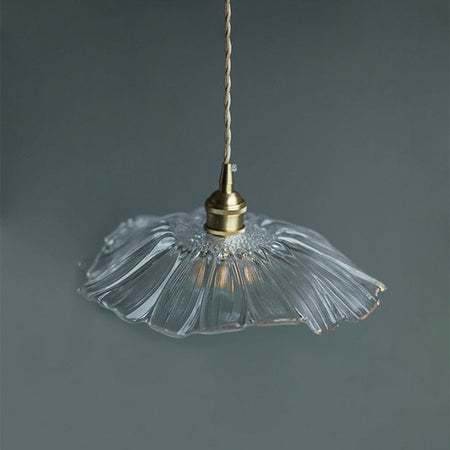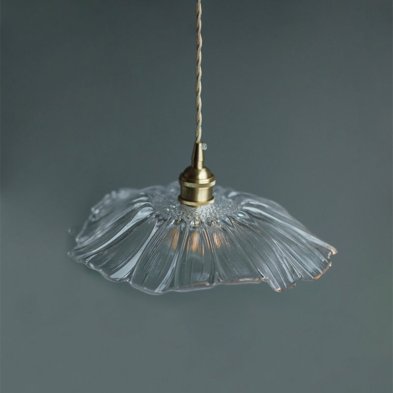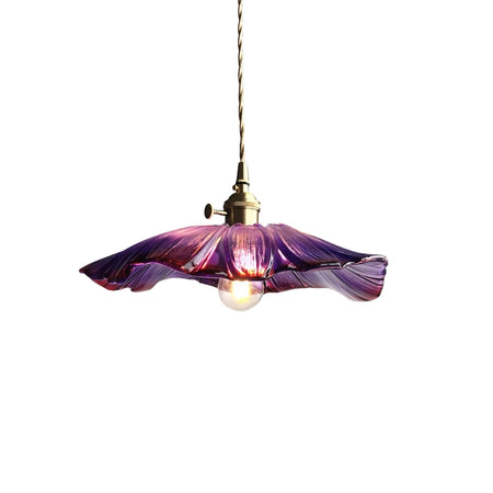 HanaGlow japanske glaspendel har et blomsterdesign i glas og kobber. Den hængende ledning kan justeres for fleksibel placering. Den medfølgende LED-pære giver lys. Fås i farverne Violet og Klar, og pendlen kan bruges både som belysning og dekorativ lampe.