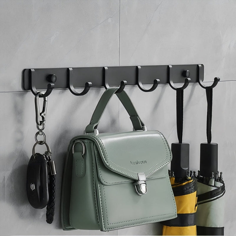 Designet til daglig brug, tilbyder HangEase knagerække langvarig holdbarhed og pålidelig ydeevne. Med 5 til 6 kroge giver den rigelig plads til at hænge dine daglige nødvendigheder som frakker, tasker, håndklæder og paraplyer. Den væghængte design hjælper med at maksimere gulvpladsen og holder dit hjem ryddeligt og organiseret.