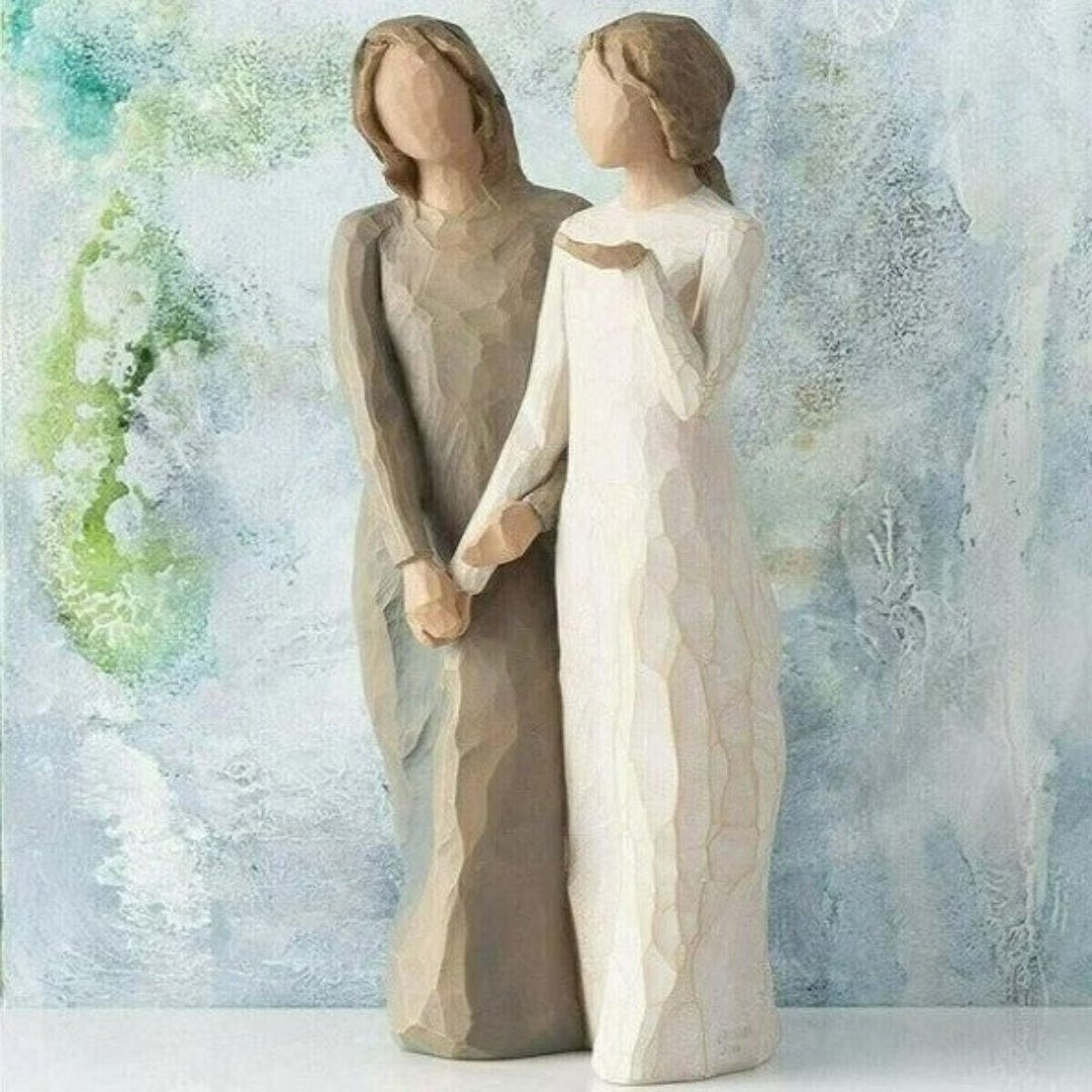 Hvert ornament er håndmalet af dygtige kunstnere, hvilket sikrer, at hver detalje er levende og unik. Lavet af holdbart materiale lover det langvarig skønhed, der vil forblive et værdsat minde i årevis. Den abstrakte figur repræsenterer kraftfuldt enhed og det støttende bånd, som søstrene deler.