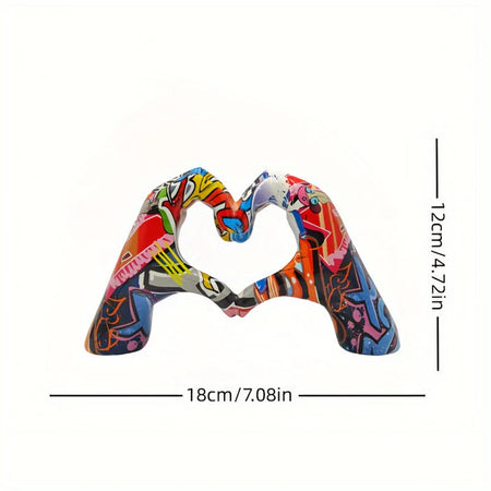 HeartSign forvandler følelser til kunst med sit markante håndformede design, inspireret af streetart og popkultur. Perfekt til at tilføje et stærkt statement i hjemmet eller på kontoret, kombinerer den moderne stil med et meningsfuldt tema om kærlighed og udtryk. Uanset om den placeres på en bogreol, et skrivebord eller et sidebord, skiller skulpturen sig ud som et samtaleemne for kunstelskere, der værdsætter originalitet.