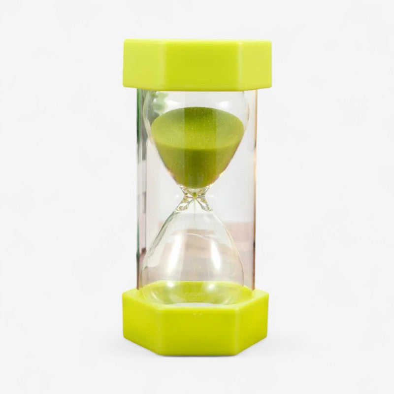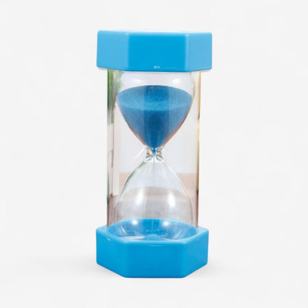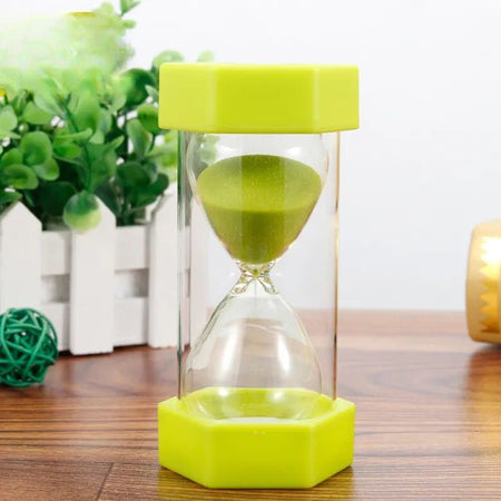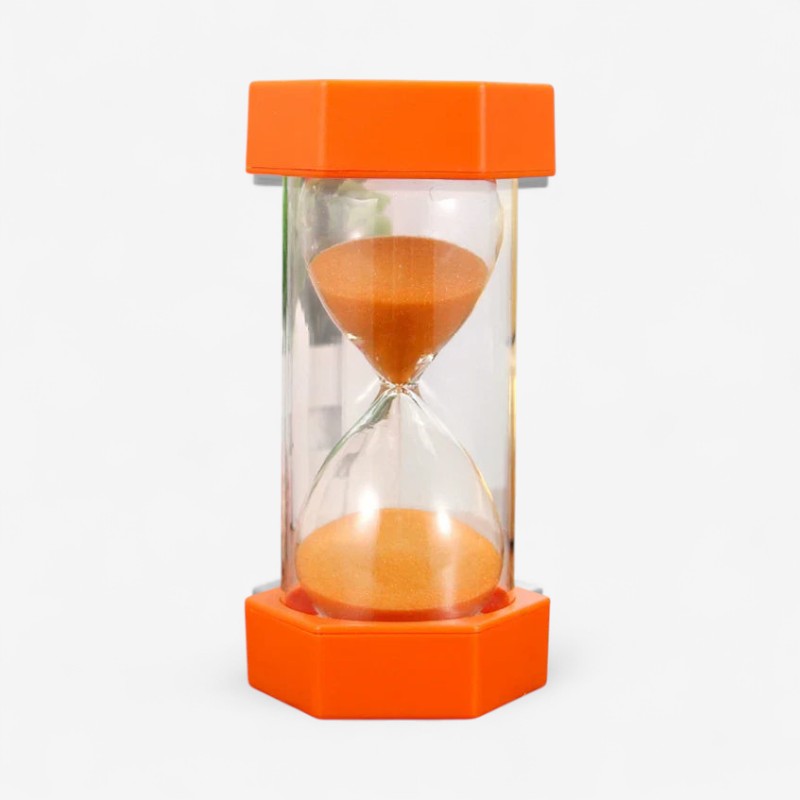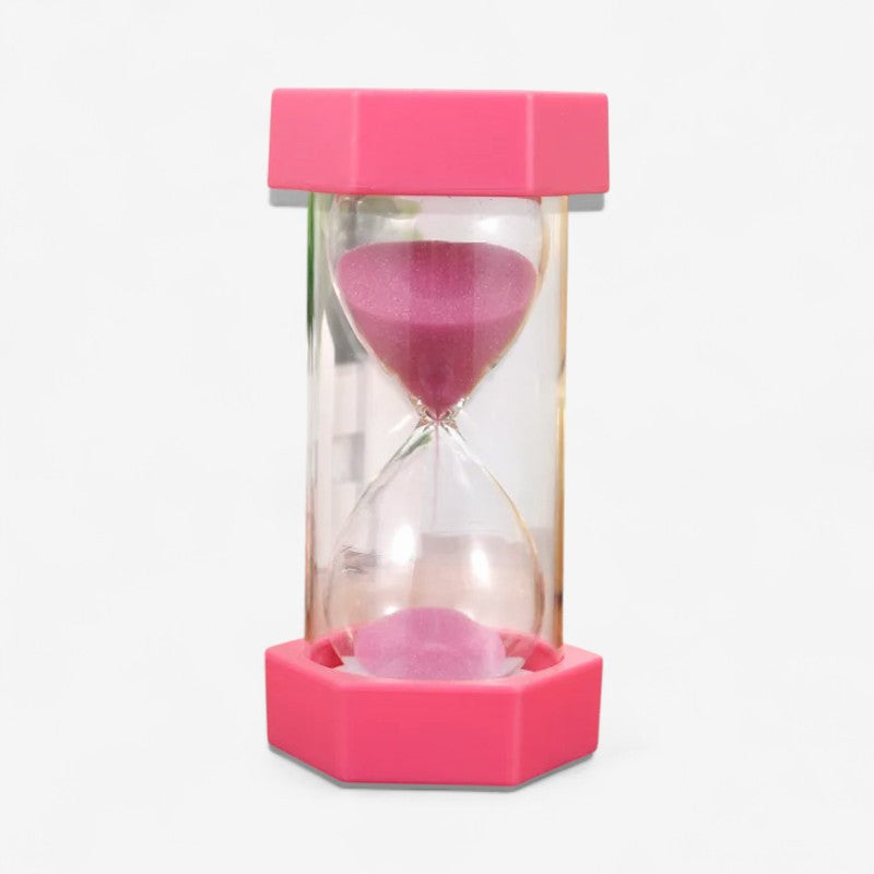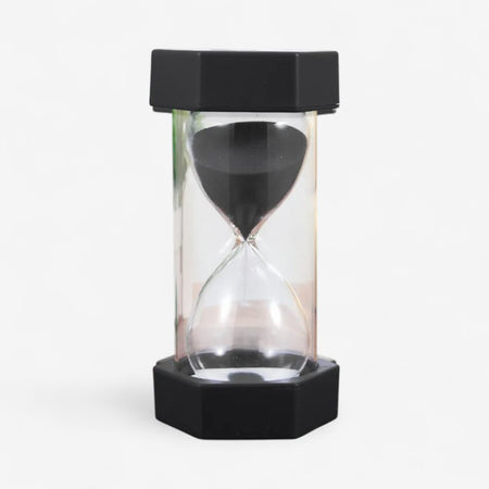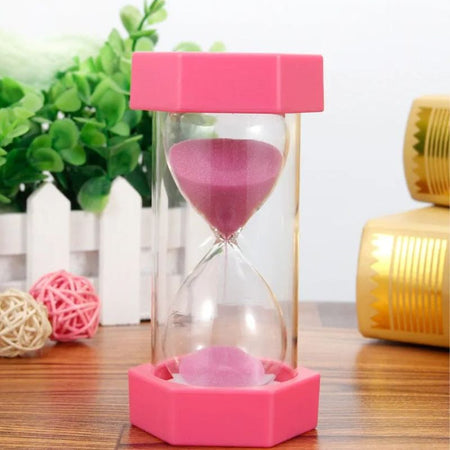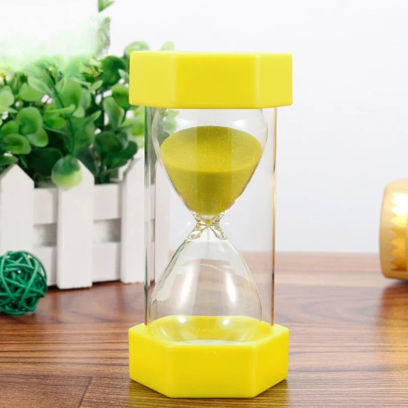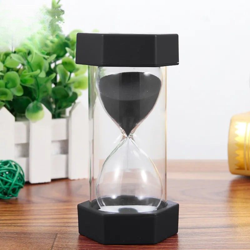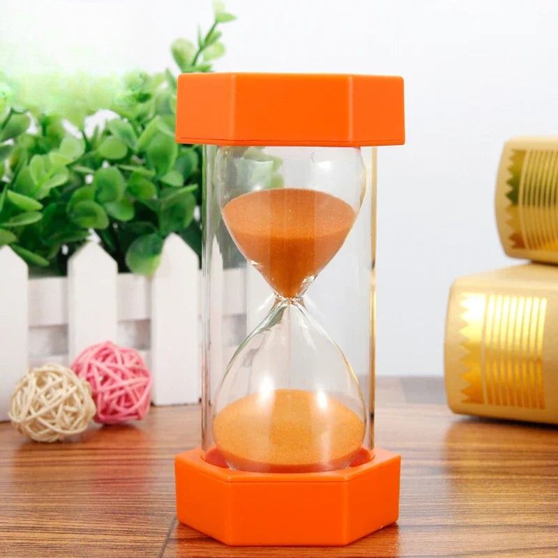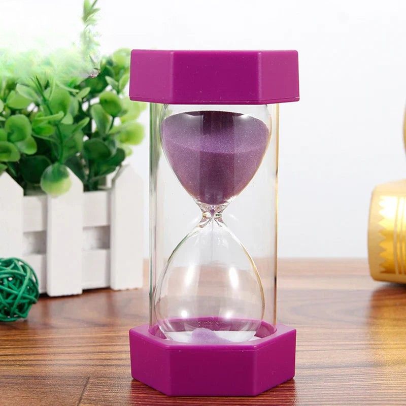 Dette timeglas har en sekskantet form med en timer. Det kan placeres på skriveborde, hylder eller borde. Dets kompakte størrelse gør det nemt at placere det i forskellige indendørs rum.