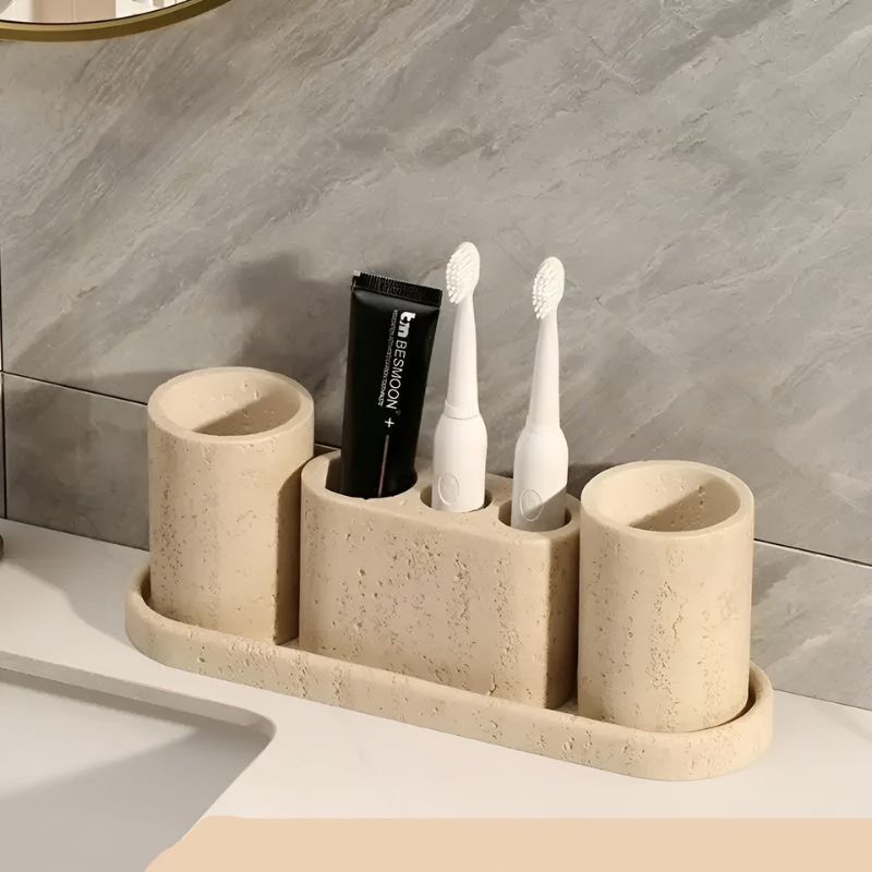 Dette badeværelsesholdersæt tilbyder flere rum til at organisere ting som børster, kopper eller sæbe, hvilket hjælper med at holde dit badeværelse pænt, ryddeligt og funktionelt.