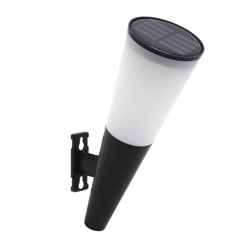 Sort hornformet solcelle LED væglampe med vandtæt udendørs design