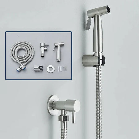 HydroClean - Premium Bidet Sprayer for Toilet revolutionerer din badeværelsesrutine og giver en blanding af moderne hygiejne og komfort. Denne bidetsprøjte er designet med henblik på elegance og brugervenlighed, og den integreres problemfrit i enhver badeværelsesindretning og sikrer en forfriskende og grundig rengøring ved hver brug. Det slanke design og den intuitive betjening gør den til en uundværlig tilføjelse til ethvert moderne badeværelse og forbedrer din daglige oplevelse.