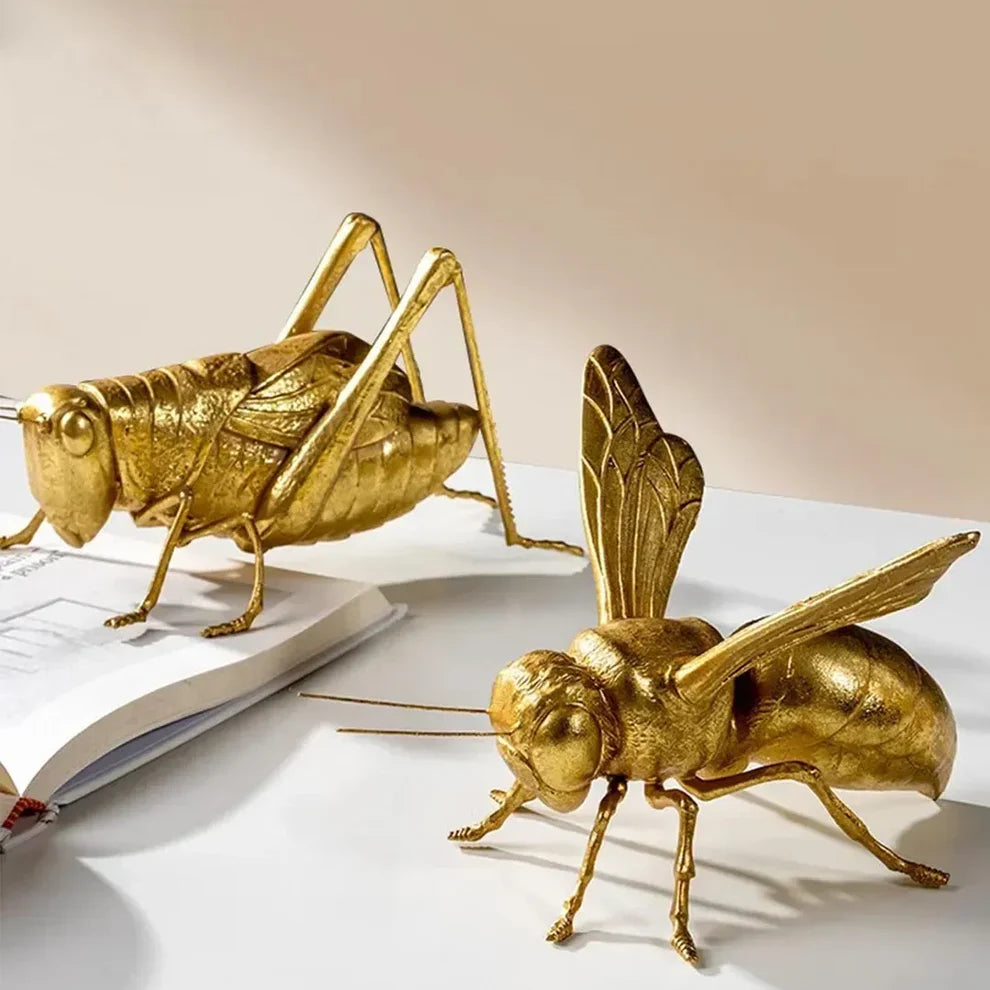Kunstneriske guldskulpturer af insekter som stilfulde dekorative accenter