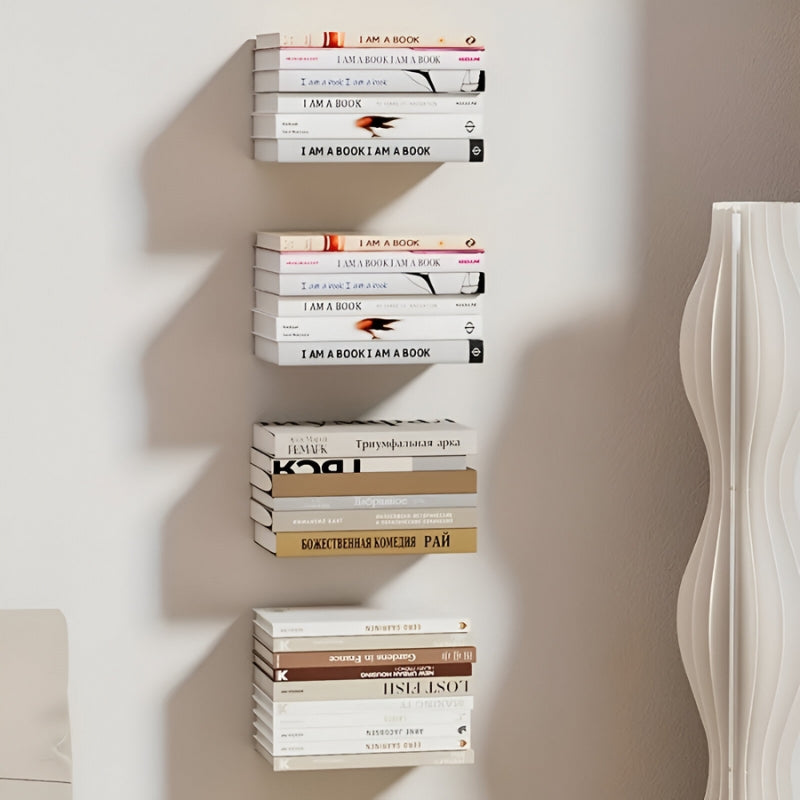 InvisiHold flydende hylder monteres direkte på væggen og skaber en ren og minimalistisk fremvisning. Designet til diskret at holde bøger og små genstande, giver disse hylder en praktisk måde at organisere og vise ejendele på i soveværelser, stuer eller hjemmekontorer.