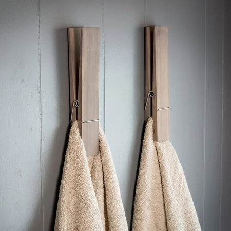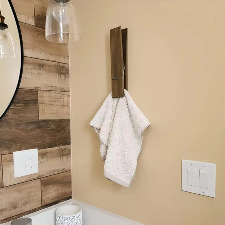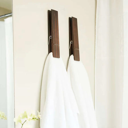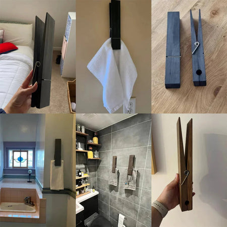 JumboGrip bringer et strejf af vintage elegance til dit badeværelse eller vaskerum, mens håndklæder og sengetøj holdes pænt organiseret. Designet som en overdimensioneret tøjklemme, tilføjer denne unikke holder en dekorativ accent til dine vægge, mens den tilbyder et sikkert greb til håndklæder, tøj eller tilbehør. Den mærkefri klæbende bagside sikrer nem montering uden at beskadige overflader.