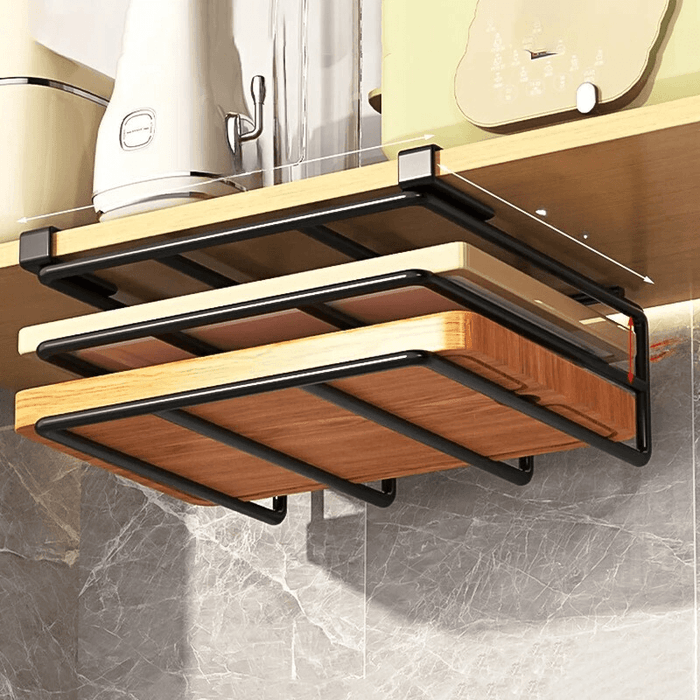 KitchenEase Hanging Organizer er en smart og praktisk løsning til at organisere dit køkken. Det giver plads til ting som skærebrætter, håndklæder og køkkenpapir og hjælper med at holde alt på plads. Denne organizer er perfekt til at skabe et ryddeligt og effektivt køkkenrum.