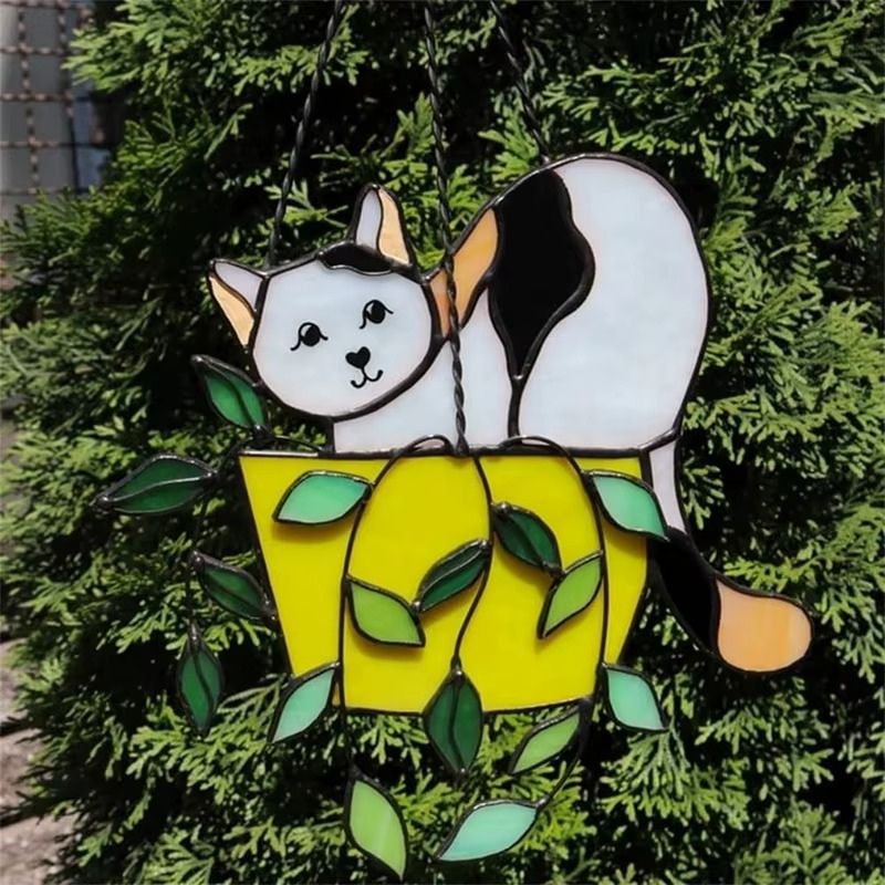 KittyHang - Kat i Hængende Blomsterpotte til Indendørs og Udendørs Dekoration