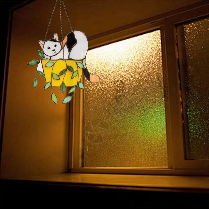 Denne hængende blomsterpotte har et katte-design og er velegnet til både indendørs og udendørs områder. Den kan rumme små planter eller sukkulenter og kan hænges på altaner, terrasser eller i opholdsrum.