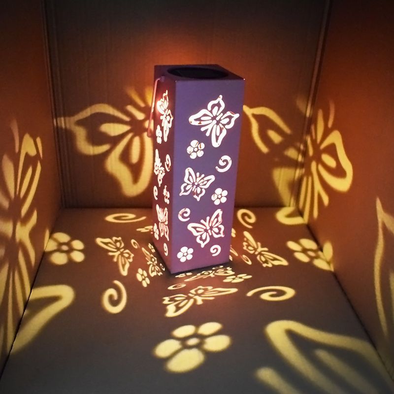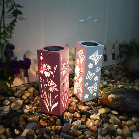 Forbedre dine udendørsarealer med denne solcelledrevne havelanterne, designet til at modstå vind og regn med pålidelig vejrbestandighed. De indviklede sommerfugle- eller orkidéudskæringer kaster fortryllende mønstre og skaber en romantisk og indbydende atmosfære om natten.