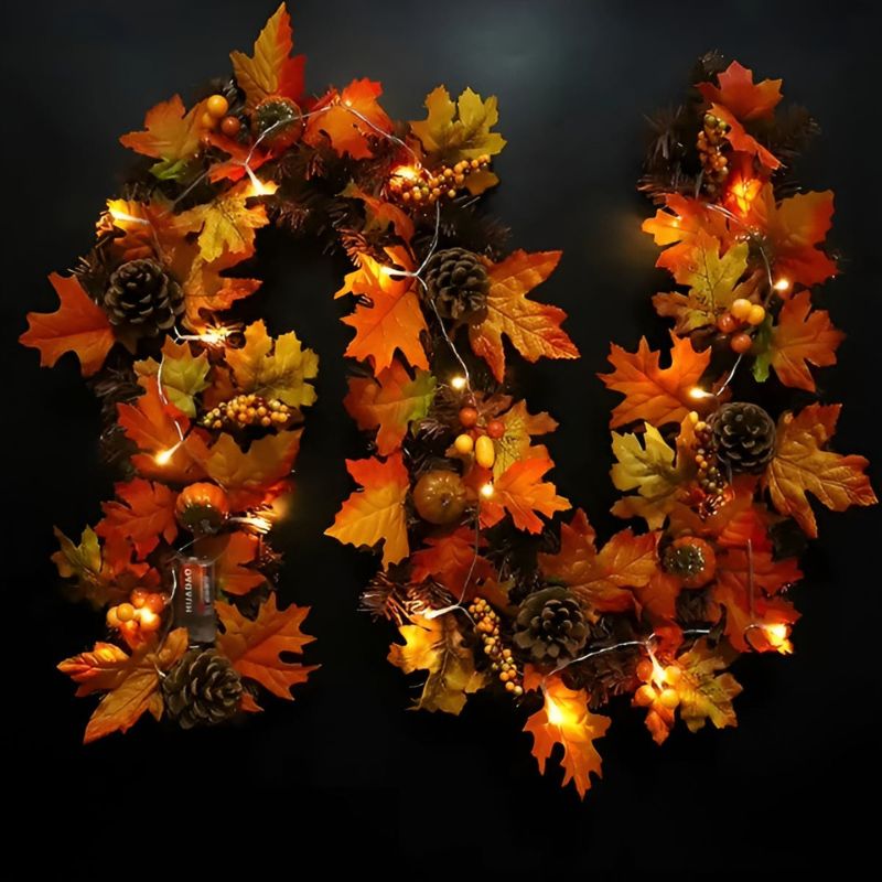 Tilføj et strejf af natur til dit hjem med denne ahornbladsgirlande, der fås i oplyste og ikke oplyste versioner. Perfekt til vægge, borde eller hylder, skaber den en blød dekorativ accent, der er egnet til forskellige lejligheder.