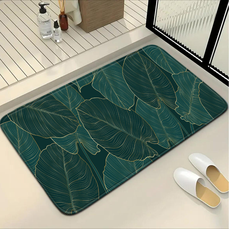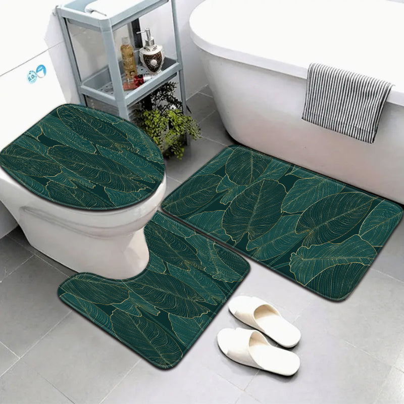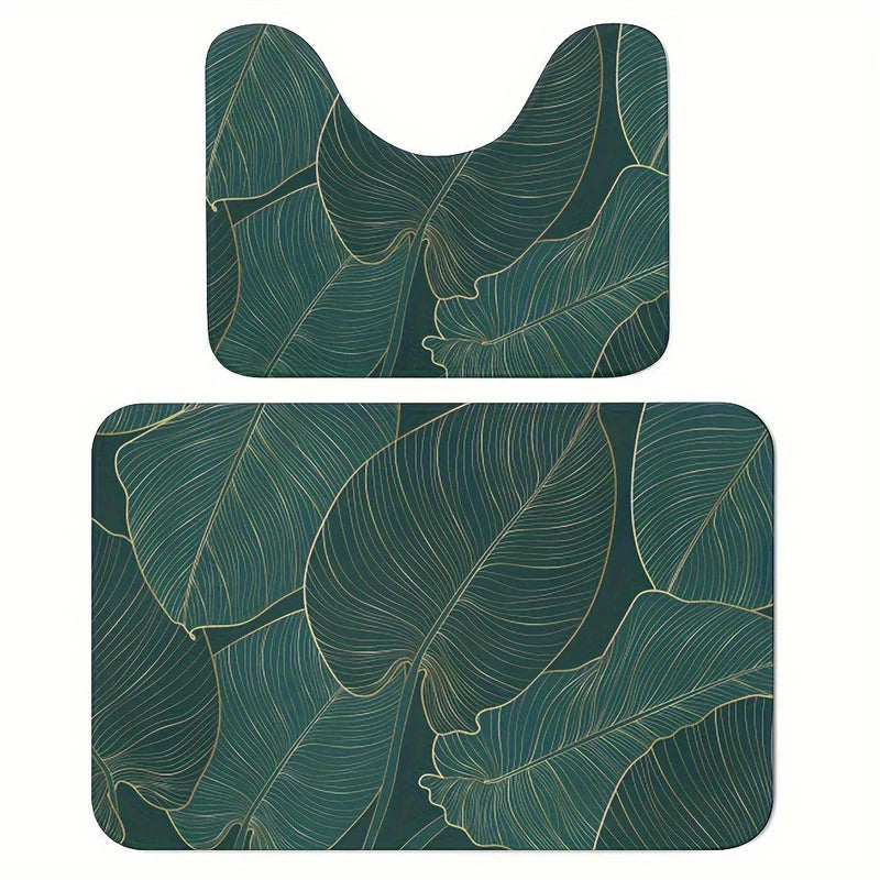LeafHaven – Badeværelsesmåttesæt med tropisk mønster og skridsikker bagside