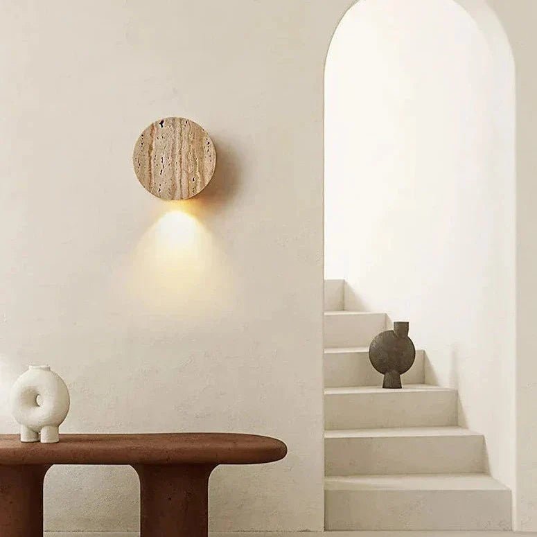 LumaStone - Minimalistisk travertin-væglampe med stemningsfuld glød til moderne rum