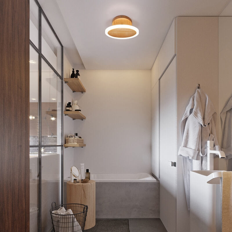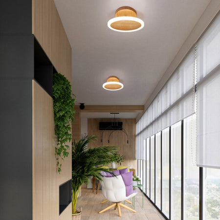 LumaWood – Cirkulær LED Loftlampe med Trædetalje