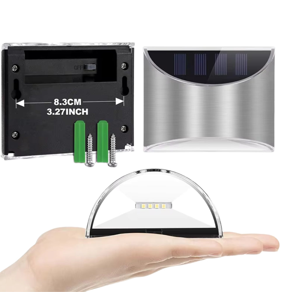 LumeBright solcelledrevet væglampe giver kraftig og pålidelig belysning til udendørsområder. Dens moderne buede design forbedrer synligheden, samtidig med at det tilføjer et stilfuldt præg til terrasser, stier og haver. Med indbygget solopladning absorberer den automatisk energi i løbet af dagen og lyser op om natten, hvilket giver en bekvem og vedligeholdelsesfri belysningsløsning.