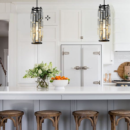 Forbedre dit hjem med en pendel, der blander vintage charme med industriel sofistikering. Den slanke ramme og den klare krystalskærm skaber et slående fokuspunkt, hvilket gør den til en perfekt tilføjelse til ethvert rum. Uanset om det er i en stue, spiseplads eller køkken, giver det både stil og funktionalitet. Den krystalklare skygge sikrer en strålende glød, der tilføjer varme og karakter til omgivelserne.