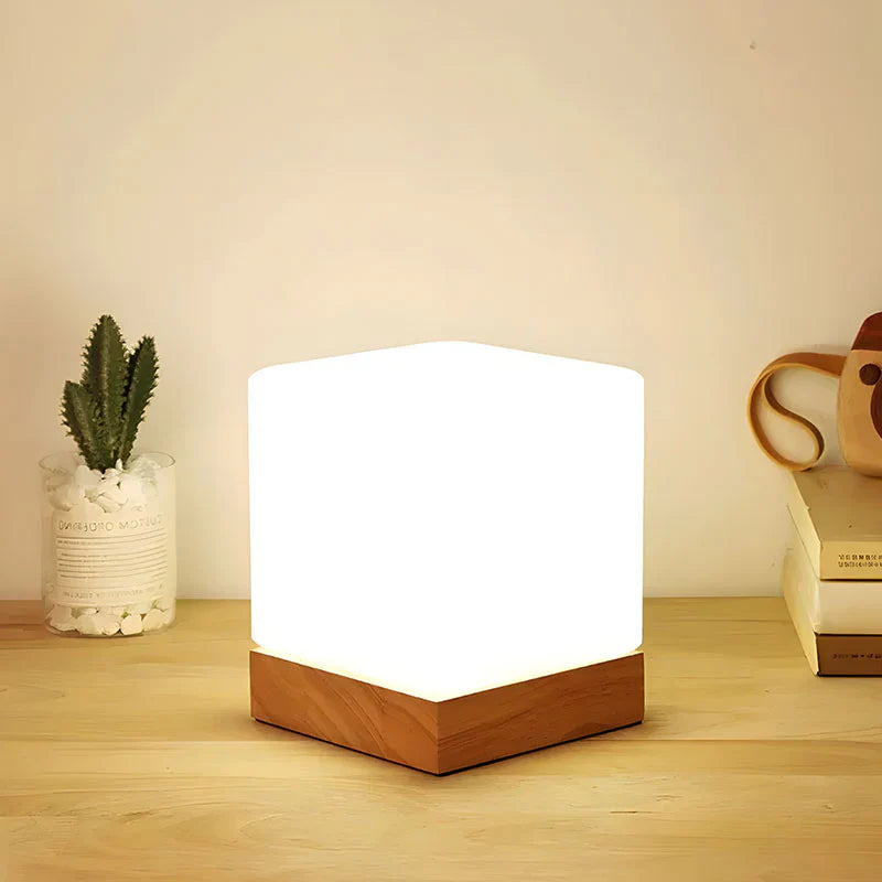 LumeNord - Minimalistisk kube-sengelampe med blød og elegant glød