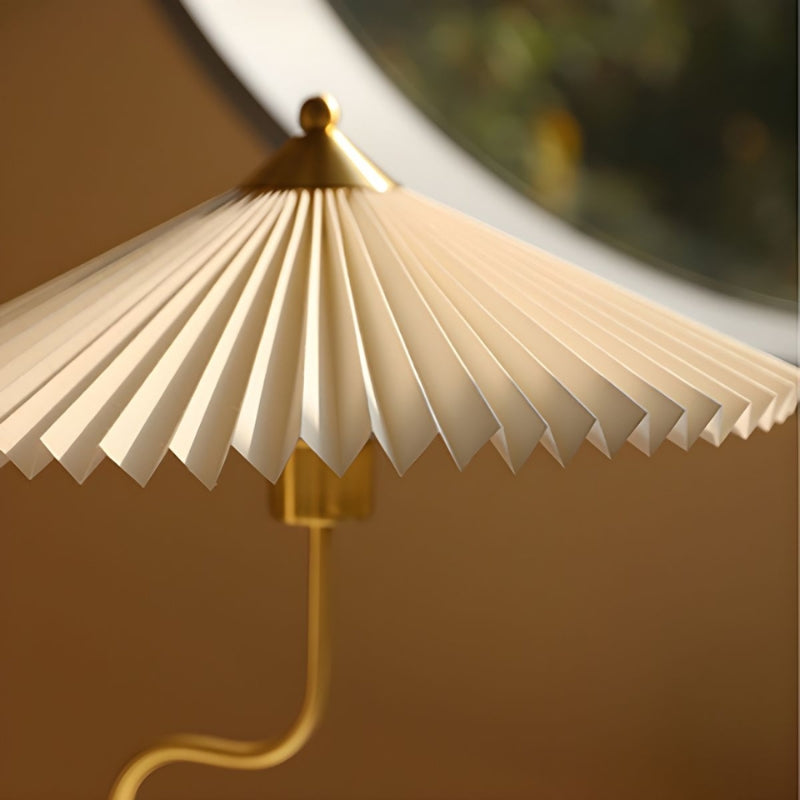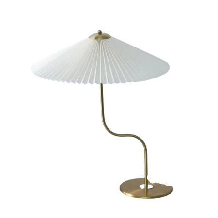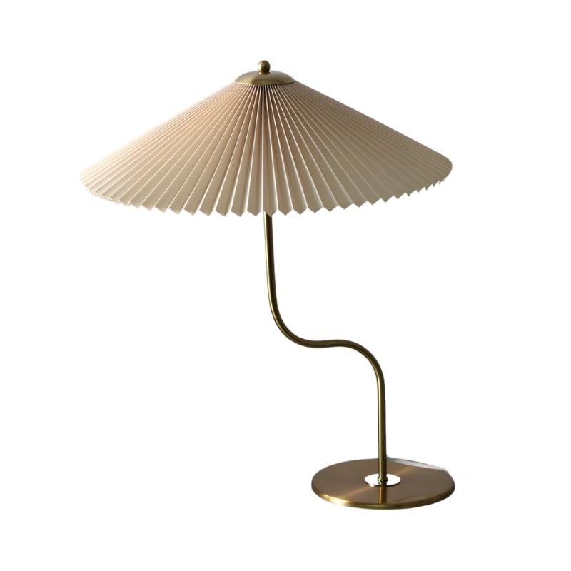 LumiCone – Moderne bordlampe med stofskærm og guldbase