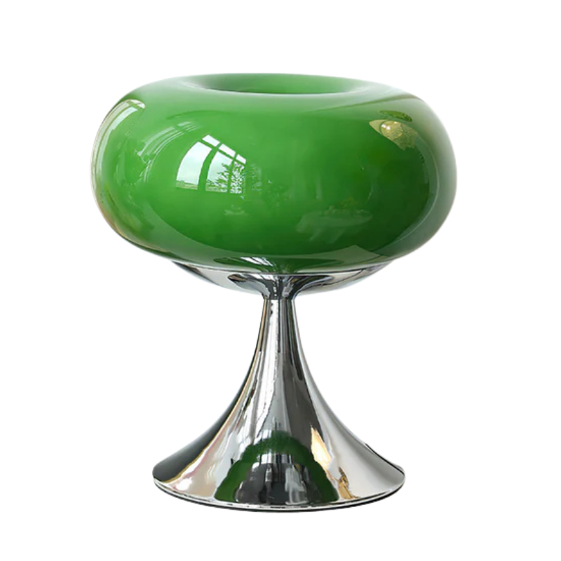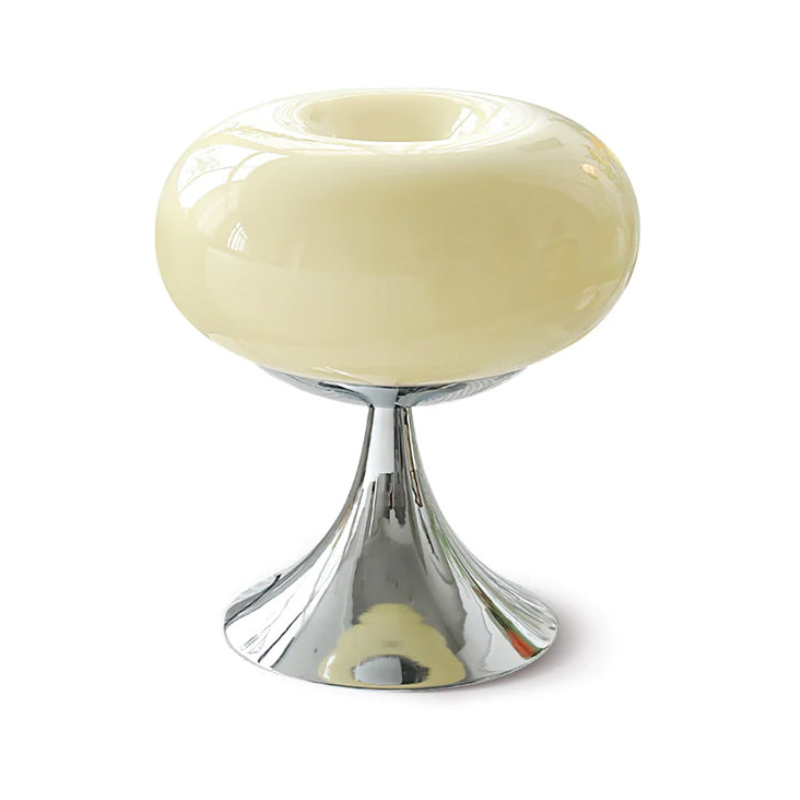 - Rundt design med metal- og glaskrop