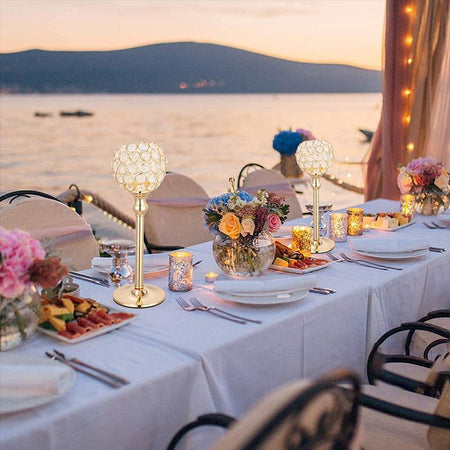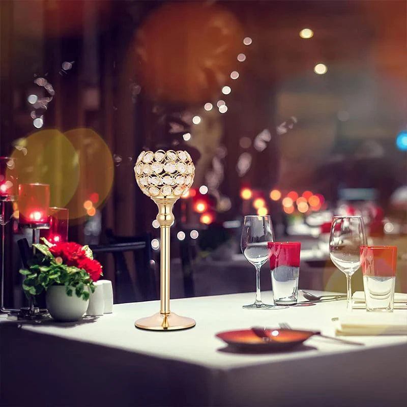 LumiPine Pine Pine Candle Holder er et fantastisk midtpunkt, perfekt til festlige årstider eller elegante sammenkomster. Med glitrende krystaller og en unik vinglasstamme bringer den raffinement og charme til ethvert miljø.
