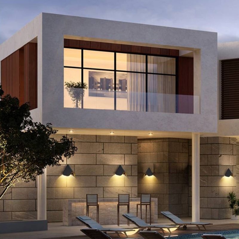 Trekantet udendørsvæglampe til terrasser, haver og indgange. LumiRay væglampe har et minimalistisk trekantet design fremstillet i aluminium. Den giver funktionel LED-belysning til udendørsområder og fås i sort eller hvid.