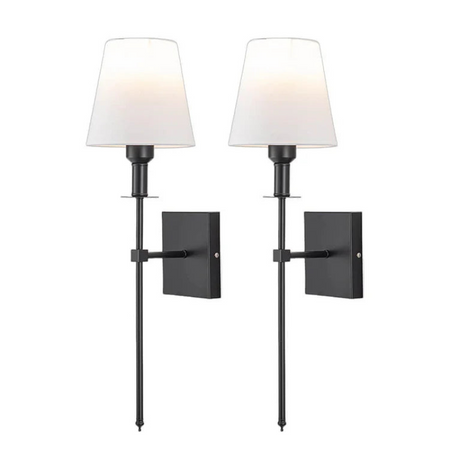 Dette sæt indeholder to trådløse væglamper med indbygget genopladeligt batteri. Hver lampe har tre valgbare lysfarver og kan betjenes med fjernbetjening eller manuelt med knap. Lamperne er fremstillet af metal og stof og kan bruges både indendørs og udendørs.