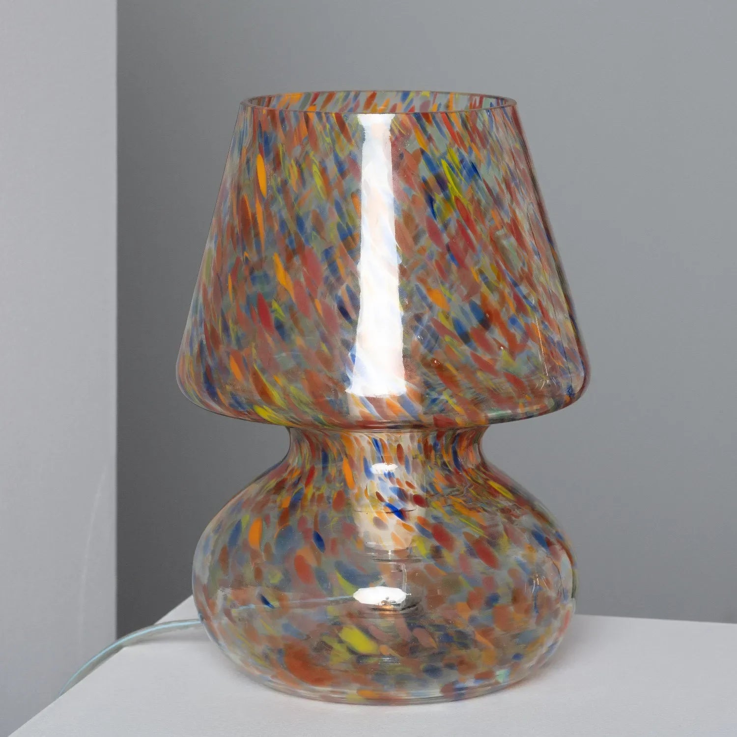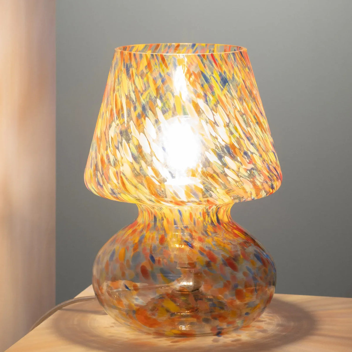 LumiVista Glass Table Lamp har et fantastisk flerfarvet glasdesign med en finish af høj kvalitet, der blander både skønhed og funktionalitet. Lampen giver et levende og kunstnerisk præg til ethvert rum, uanset om det er i stuen, soveværelset eller på kontoret.