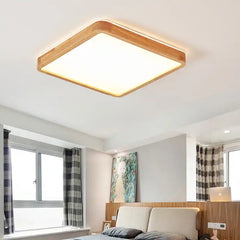 Moderne flad LED loftslampe med varm træfinish