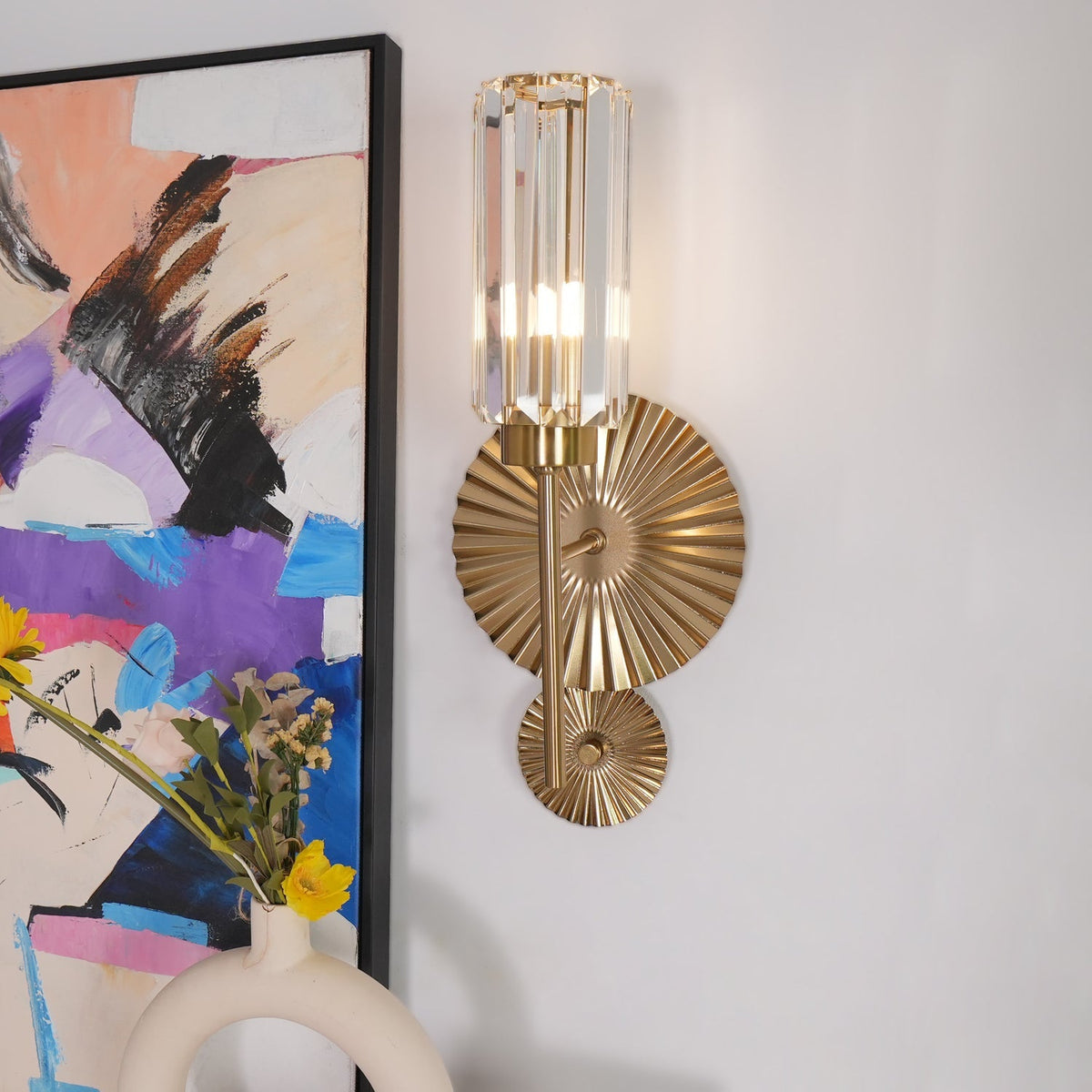 LumoChic – Væglampe i glas og metal med cylindrisk skærm
