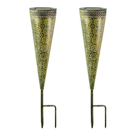 LumoFlora - 2-Pack koniske solcellelamper med blomstermønsterstake