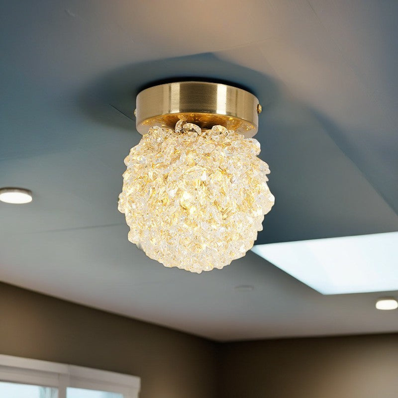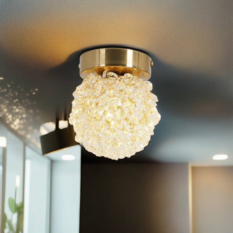 LustraGlow – Krystalkugle Loftlampe med Metallisk Base