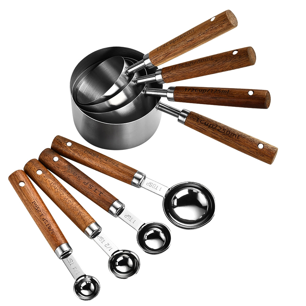 - Materiale: Egetræshåndtag rustfri stålkopper og skeer