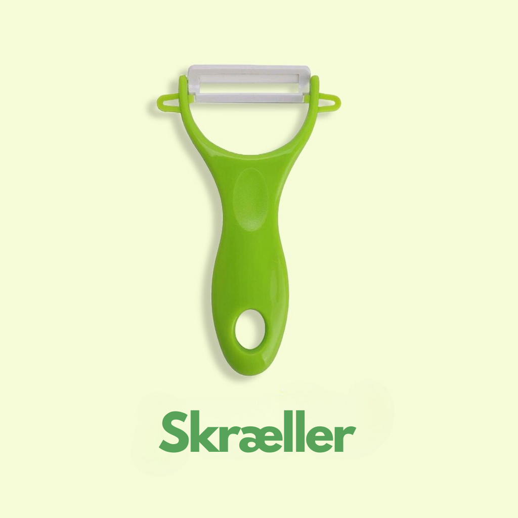 - Indeholder fire børnesikre knive, en skræller og en række skæreværktøjer og brædder